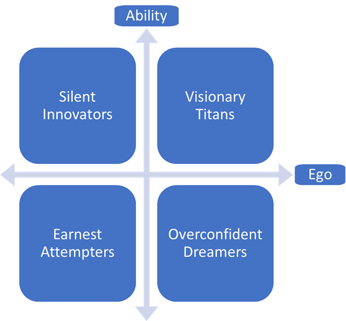 In the bustling world of startups, different founders display an array of characteristics that can be amusingly divided into four quadrants based on two critical variables: ego and ability. Here's a guide to understanding these unique entrepreneurial archetypes, and why they may determine the success or failure of a new venture.
